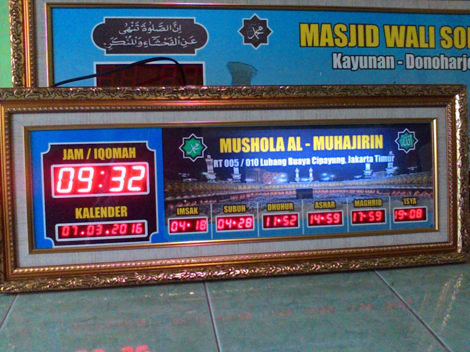 Sebagai Pusat Produsen sekaligus Distributor Jam Digital Masjid Jakarta kami memberikan banyak fitur dan kelebihan di beberapa produk kami. Dengan harga yang terjangkau anda dapat memiliki Jam Digital Masjid yang bermutu dan berkualitas bagus serta elegan. Design yang kami buat mulai dari pigura hingga background Jam Digital Masjid dapat sesuai permintaan anda. Banyak konsumen kami yang meminta untuk memasukkan profil masjid di daerahnya agar terpampang pada Jam Digital Masjid. Pigura dan Chasing yang kami gunakan menggunakan bahan baku dari Polysteren dan Akrilik sebagai pelindung bagian depan. Sehingga, akan nampak indah dan elegan.