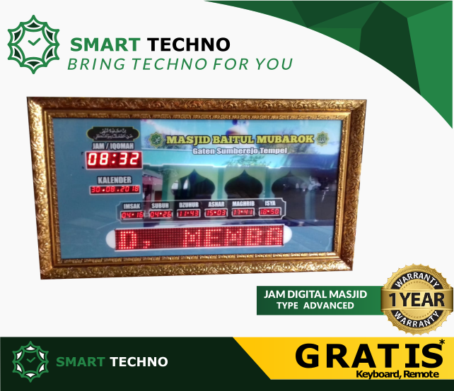 Terlebih lagi kami selaku pusatnya Jam Digital Untuk Masjid memiliki layanan pasca pembelian. Barangkali anda merasa kebingungan apabila terjadi error ataupun kerusakan komponen Jam Digital Masjid anda tak perlu risau lagi. Kami akan melakukan service dengan cepat dan teliti sehingga Jam Digital Masjid akan berfungsi seperti semula. Bahkan jika anda menghendaki penggantian background agar suasana ketika memasuki masjid akan berbeda dari biasanya.