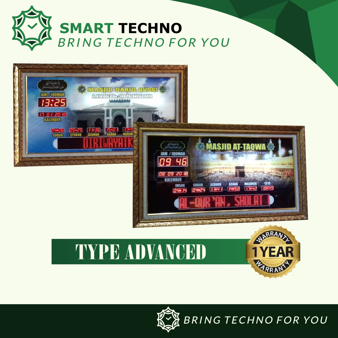 Smart Techno adalah sebuah perusahaan yang menjadi produsen sekaligus distributor resmi Jam Digital Masjid. Sebagai Pusat Jam Digital Masjid Jogja kami sangat tahu akan kebutuhan Jam Digital Masjid. Kami memproduksi Jam Digital Masjid dengan tenaga ahli yang sudah profesional dan berpengalaman. Komponen dari Jam Digital Masjid produk kami sangat berkualitas dan terbaik. Melalui beberapa proses diantaranya pemilihan komponen untuk mesin dan untuk Chasing kami sangat berhati – hati karena demi kenyamanan konsumen kami yang nota bene sebagai pengurus Takmir Masjid yang berada di seluruh Indonesia. Perakitan dan pemasangan produk kami juga menggunakan alat alat yang canggih dan sesuai standard pabrik. Sehingga, produk kami sudah lulus quality control.