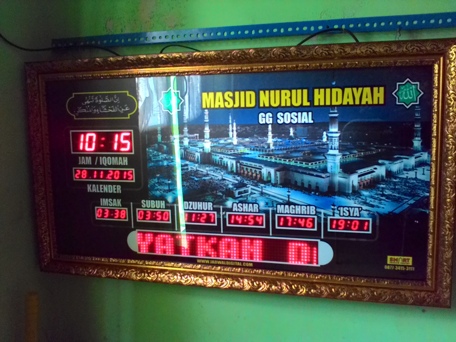 Jadwal sholat digital pesanan Masjid Nurul Hidayah yang beralamat dipontianak, Jama’ah masjid Nurul Hidayah telah sepakat memilih tipe Advanced mini dengan dimensi 90 x 50 untuk menghiasi dinding masjid ,semoga bermanfaat bagi jama’ah Masjid Nurul Hidayah terimakasih telah memilih produk-produk kami SMART TEHCNO CENTER
